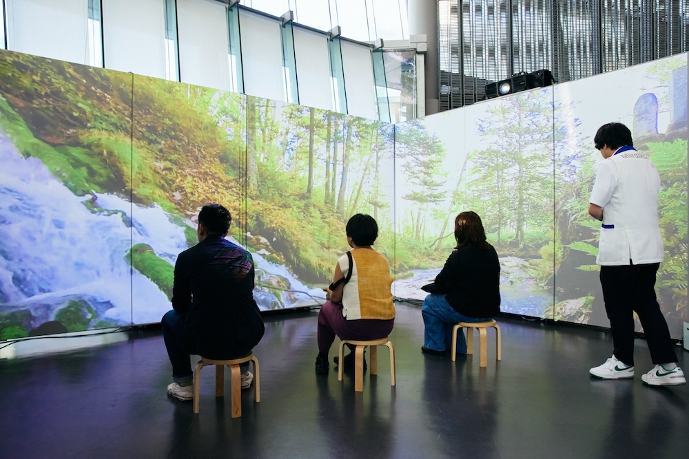 森林浴をすると、副交感神経が活性化して、怒りや焦りの感情が減るという効果があるといわれており、同様の環境をデジタルで再現。映像や音響、香りなどを駆使し、実際に森林浴をした時と近い水準の癒し効果が期待できるそう。
