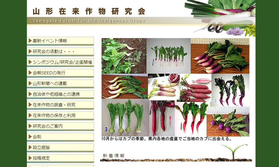 山形在来作物研究会のHPでは、在来作物の種類や研究結果等を公開している。