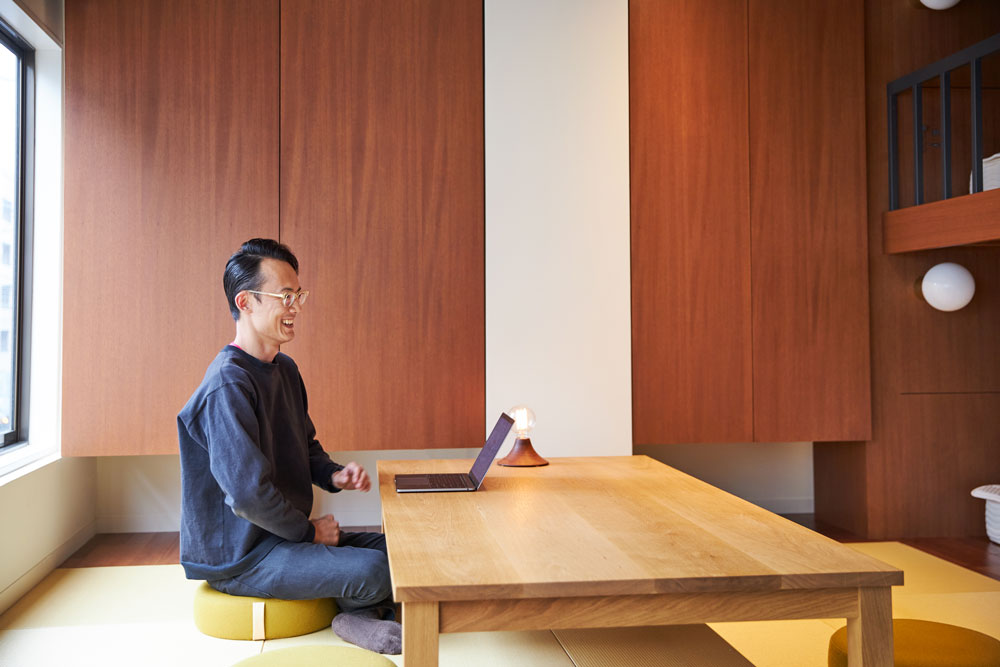 背景にあったのは、コロナ以前から働き方が多様になっていて、ノマドワーカーやリモートワーク、多拠点居住で、住む場所を移動しながら働くことも、これからの「当たり前」になるだろうということ。その段階では、一部の先進的な方だけが実践していたスタイルでしたが、一般企業でもその概念を取り入れられないかと考えたんです。これからのオフィスは毎日通勤しなくてもいい場所になるかもしれない。それなら、使わないオフィスを有効活用できないか。オフィスとして快適な空間は、イベントスペースや宿泊施設にしても快適なはずです。そのため、平日はワークスペースとして、週末は多目的に使える複合空間〈tefu yoyogi uehara〉を作りました。