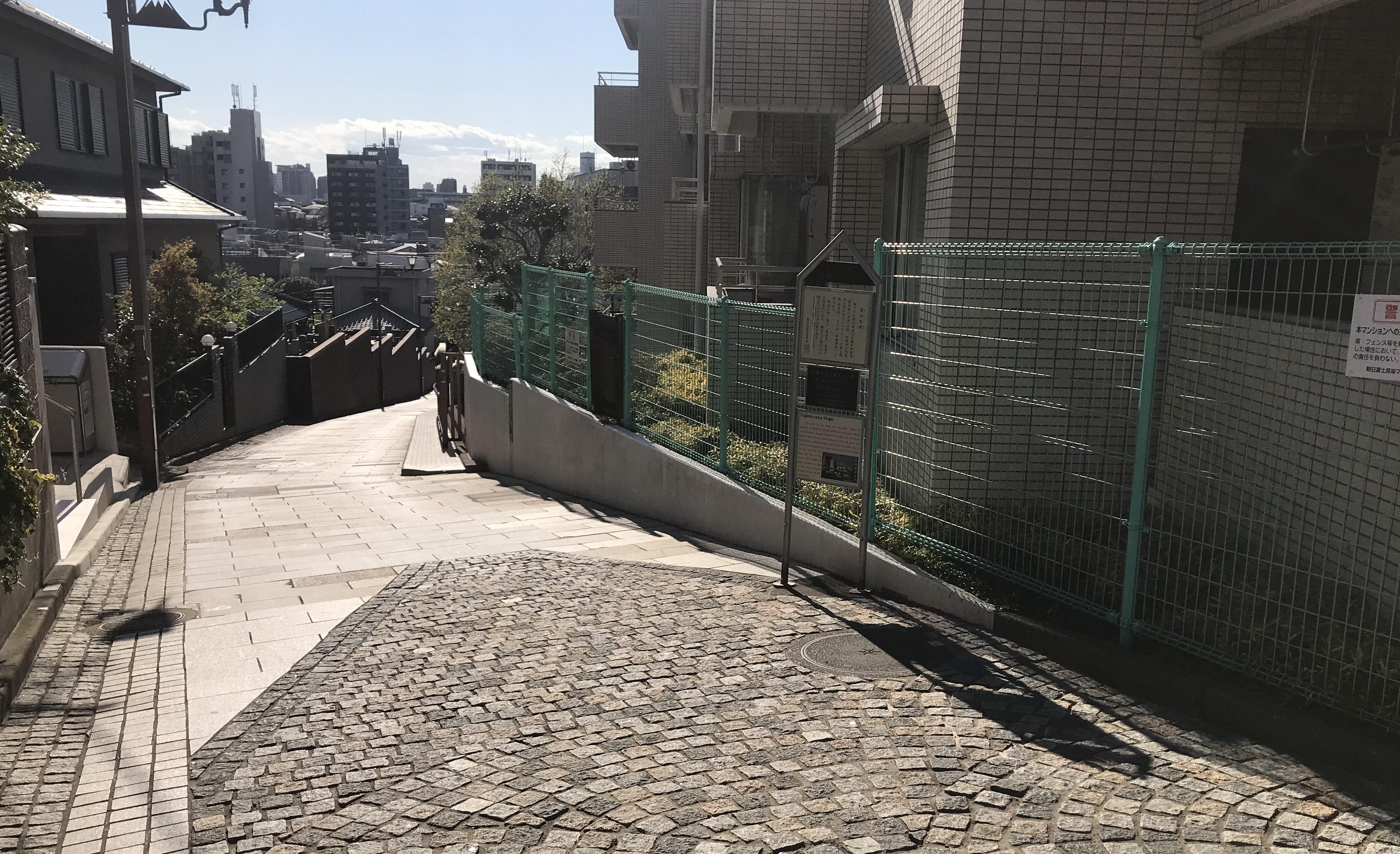 ちょっとハイカラな石畳、程よく曲がったカーブ。それだけでも味わいのある坂ですが、富士山がその先に見えるとは贅沢ですね。
