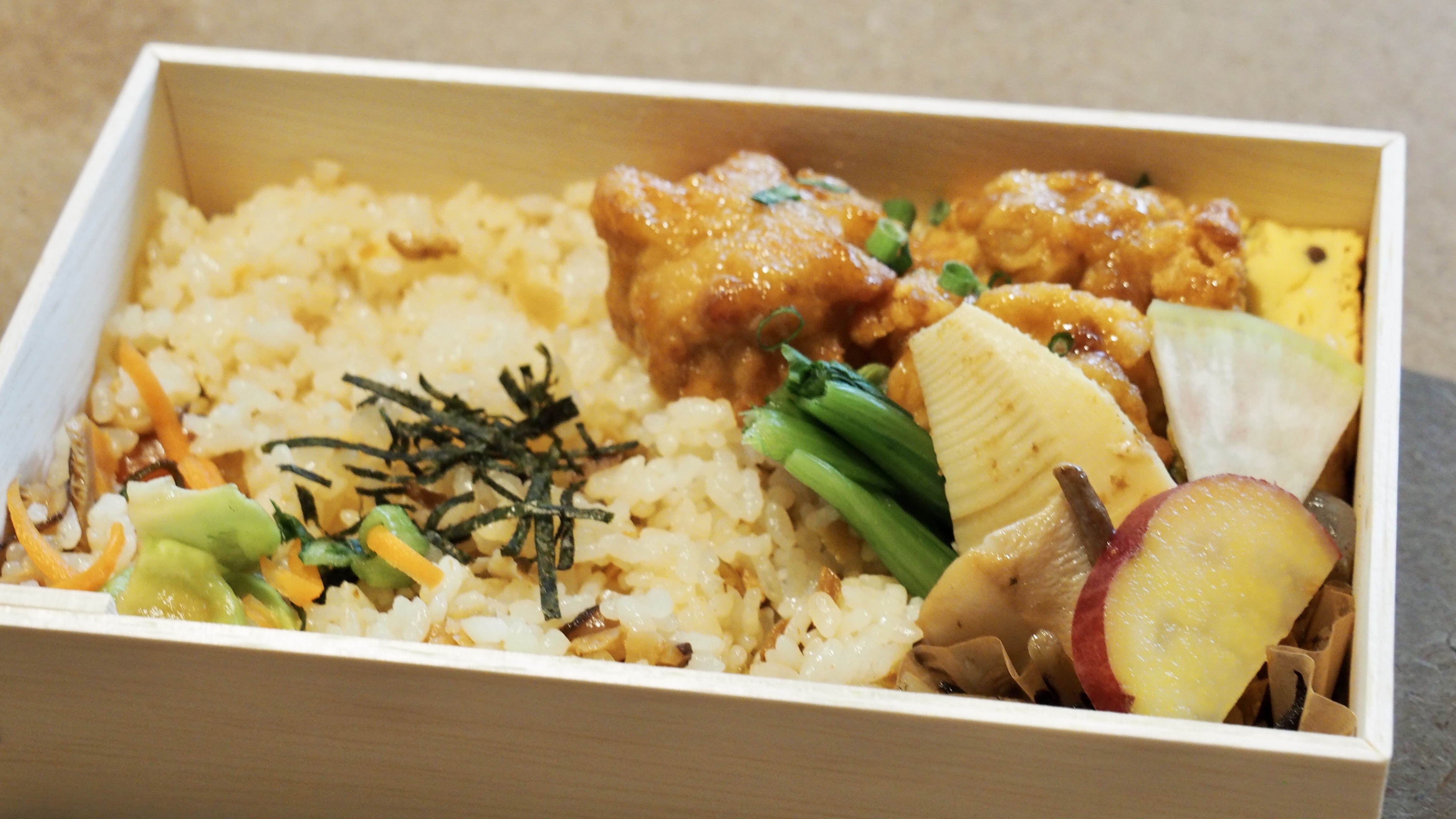 からあげ混ぜご飯弁当。幸せを感じる優しい味付け。