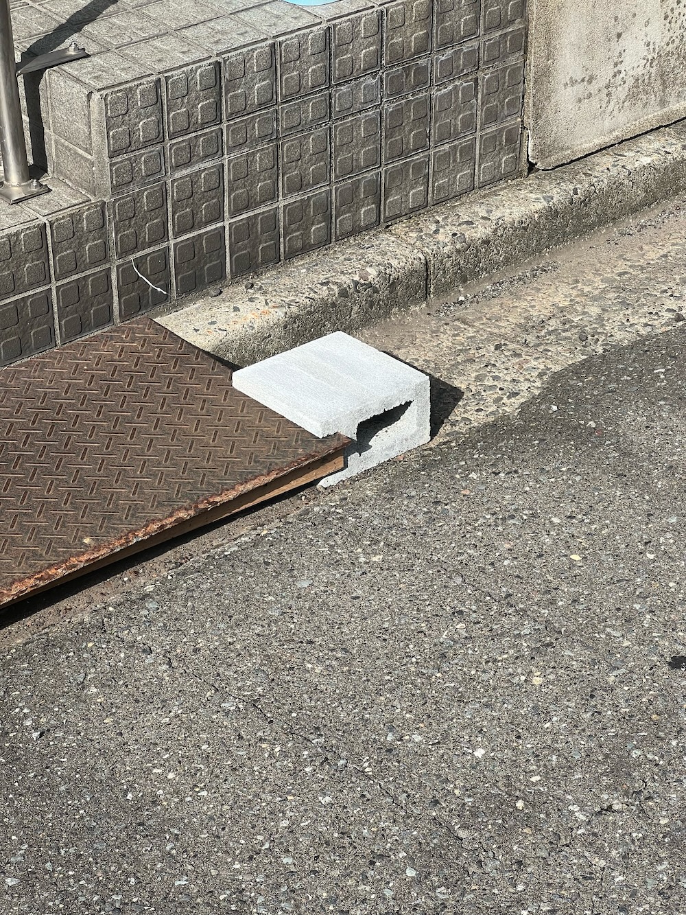 最近のスナップ。足場を固定するために何気なく置かれたコンクリートブロックが良い違和感を出している。