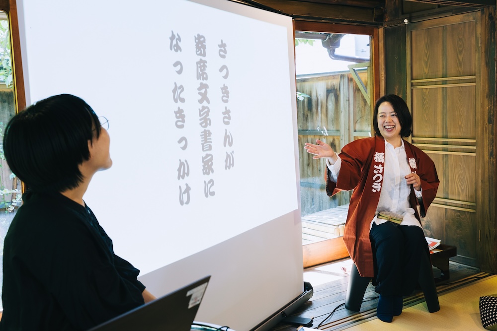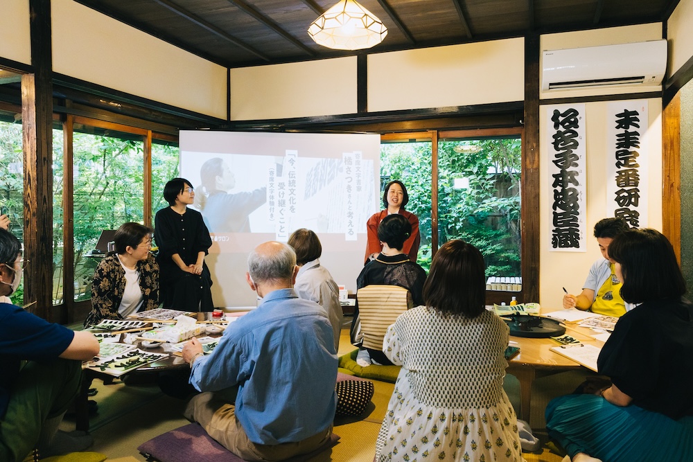「今、伝統文化を受け継ぐこと」というテーマのもと、寄席文字書家の橘さつきさんにご登壇いただき、寄席文字の文化について教えていただきました。また、イベントの後半では寄席文字体験も実施。参加者の皆さんが実際に手を動かしながら、江戸時代をルーツとした寄席文字とその未来について考えました。