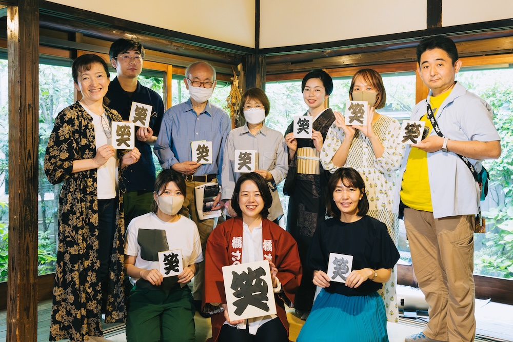 貴重なお話を聞いた後は、お待ちかねの参加者の皆さんが楽しみにしていた、寄席文字体験です。ですが、いきなり書くのは難しいので、書く文字を一文字選ぶことに。いくつかの候補の中から参加者の皆さんが選んだのは「笑」の文字。まずはさつきさんにお手本を書いていただきます。「笑点の文字ですからね、いいチョイスですね」とさつきさん。