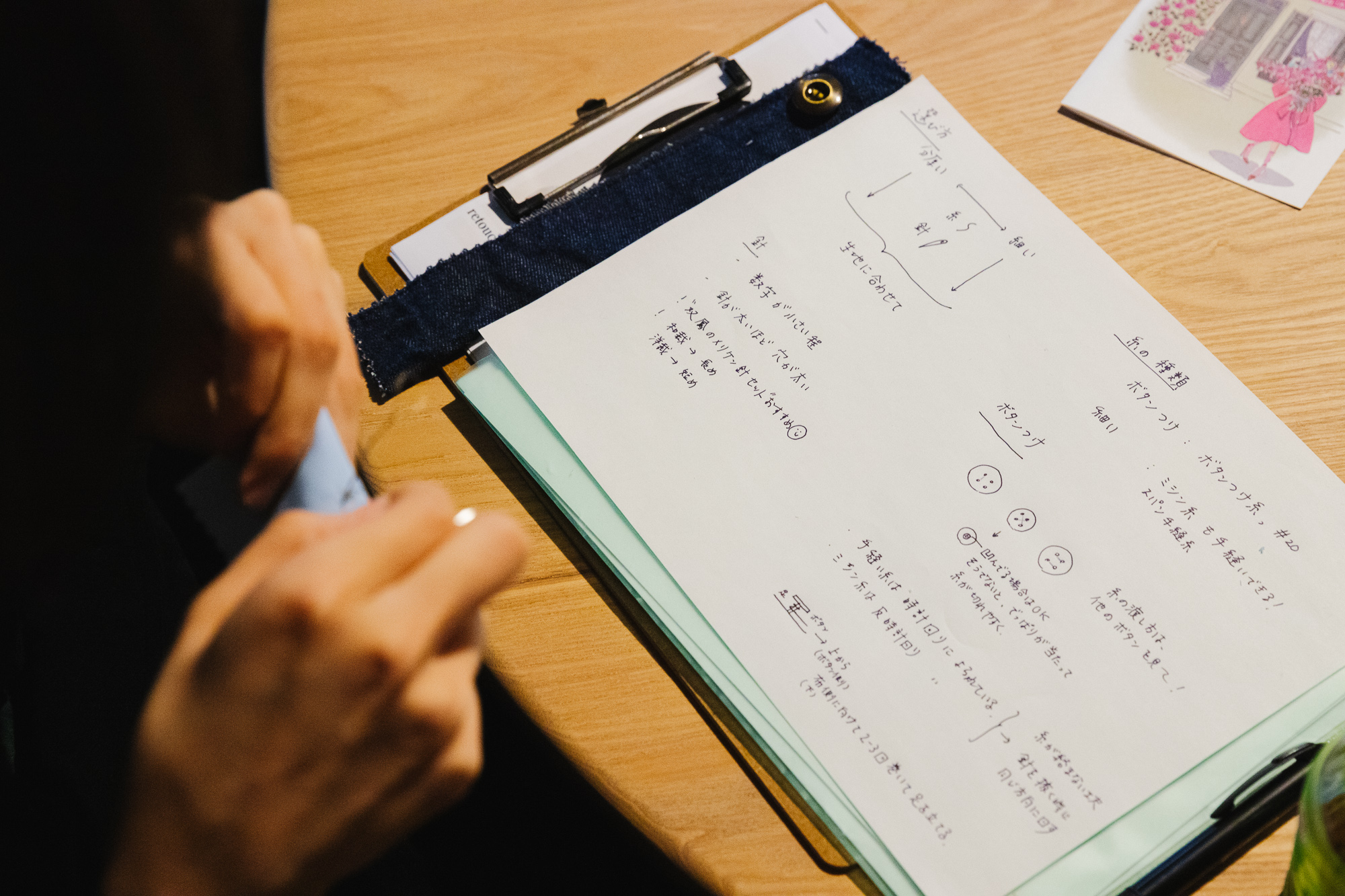 生地に合った針、糸、ボタン選びが大切。