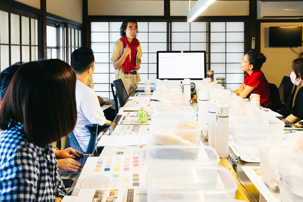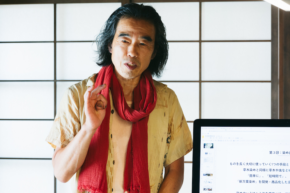 講師としてお招きするのは、〈京都 川端商店〉の3代目・川端康夫さん。独自に開発した天然染料による染色技法「新万葉染め」について教えていただくとともに、参加者全員で実際に染色を体験。体験を通じて「染め直し」の可能性を探りながら、5年先の人とファッションの関係性についても考えました 。