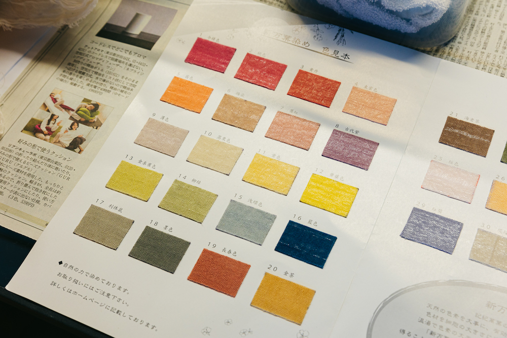 新万葉染めの色見本。穏やかな色合いが特徴。