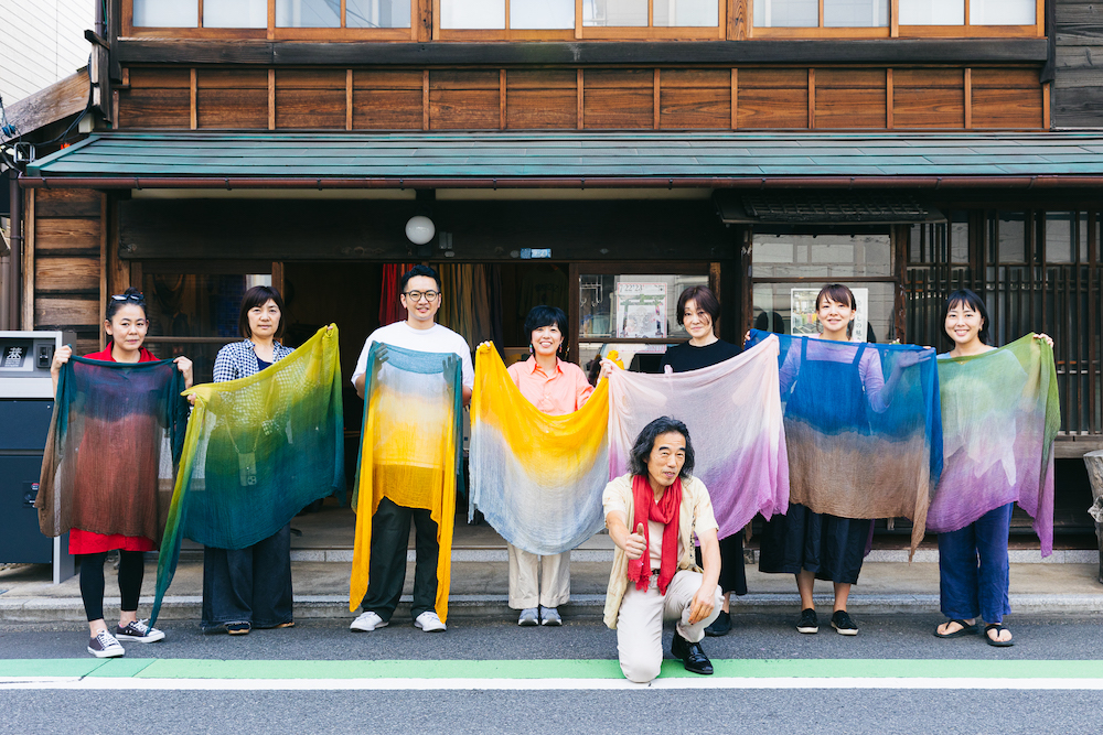 ワークショップを終えてからも、〈京都 川端商店〉のスカーフや新万葉染め体験キットを求めて、川端さんの周りに集まる参加者のみなさん。細かな質問にも真摯に答えてくれる姿が印象的でした。環境にも人間にも優しい天然染料。普段何気なく着ている服ですが、どのような工程で作られ、染められているのか、今一度考えるための良いきっかけになりました。もし着古して色褪せたり、シミがついたり、元の色に飽きてしまった服を、新万葉染めで染め直せば、新しい使い道が生まれそうです。