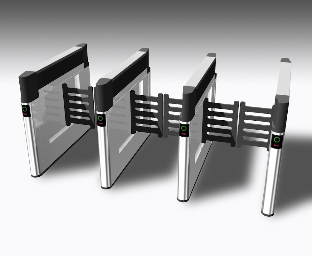 秋田さんがデザインしたセキュリティゲート。ぶつかっても衝撃が少ないようにと扉にゴムが採用されており、この先回り思考が反映されている