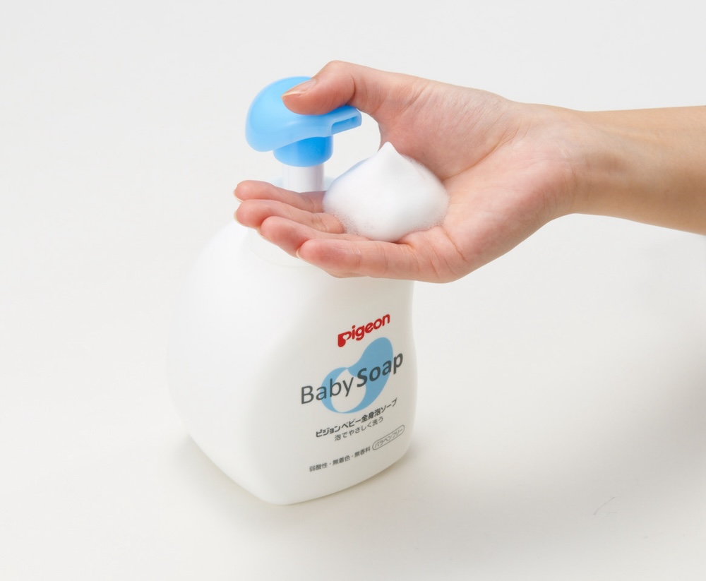 子育てをする人の困り事の解消に一役買っているのが、秋田さんがデザインをした「ピジョンのベビーソープ」。赤ちゃんを抱えながら洗う際、片手でもソープが出しやすいようにと「使いやすさ」を考えて、ポンプのヘッドを大きく柔らかくしている